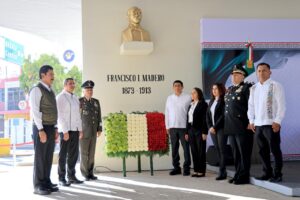El gobernador y representantes de los poderes del estado colocaron una ofrenda floral al pie de la efigie de Madero, como símbolo de respeto y memoria hacia su legado revolucionario.