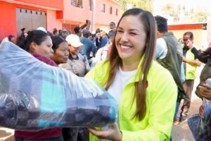 La Presidenta Honoraria del DIF Municipal, Gaby García, indicó que esta primera jornada se realizó para que las vecinas y vecinos comiencen a recibir el abrigo que necesitan cuanto antes. “El objetivo es avanzar de manera inmediata hacia las colonias y agencias con mayor exposición a las bajas temperaturas”.