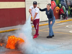 Como parte de las actividades, las y los integrantes participaron en capacitaciones teórico-prácticas sobre el uso adecuado de extintores, que incluyeron ejercicios con fuego real, con el fin de dotarlos de conocimientos y habilidades que les permitan reaccionar con eficacia ante un conato de incendio u otra contingencia.