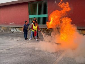 Como parte de las actividades, las y los integrantes participaron en capacitaciones teórico-prácticas sobre el uso adecuado de extintores, que incluyeron ejercicios con fuego real, con el fin de dotarlos de conocimientos y habilidades que les permitan reaccionar con eficacia ante un conato de incendio u otra contingencia.