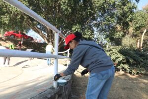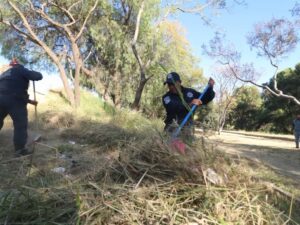 Durante la jornada, servidoras y servidores públicos de diversas áreas se coordinaron para realizar actividades de mantenimiento como limpieza de jardineras, levantamiento de basura, poda de pasto y pintura en canchas y espacios de uso comunitario. Estas acciones contribuyen a mejorar el entorno inmediato y a fortalecer el orden en una zona de alta movilidad para vecinas y vecinos.