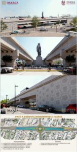 El Paso a Desnivel del Monumento a Juárez sobre la carretera federal 190, a la altura de la Agencia Municipal de Trinidad de Viguera, contempla ocho carriles, un puente vehicular, pasos peatonales, zonas verdes y paradas de transporte dignas, como parte de una estrategia integral de movilidad urbana impulsada en coordinación con el Gobierno del Estado y el respaldo del Gobierno de México.