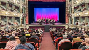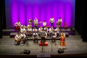 La celebración también tuvo un momento memorable con el concierto de la Banda Regional Princesa Donashii, que llenó por completo el majestuoso Teatro Macedonio Alcalá.
