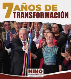 La nueva historia del país, se escribe con la Cuarta Transformación, anotó Nino Morales, al señalar que las auténticas conquistas del pueblo deben defenderse, para seguir escribiendo juntos, el segundo piso de la Cuarta transformación, con todavía más fuerza y unidad, por los grandes proyectos que vienen.