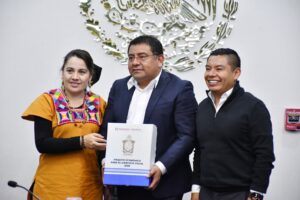 Por su parte, el Titular de la Sefin, detalló que este documento consta de cinco libros divididos en siete tomos contiene el proyecto para el Presupuesto de Egresos; la Ley de Ingresos del Estado para el Ejercicio Fiscal 2026; la Ley General de Ingresos Municipales del Estado, así como el Proyecto de Decreto por el que se establecen los porcentajes, fórmulas, variables utilizadas, coeficientes de distribución y los montos estimados que le corresponden a los municipios de Oaxaca de los fondos que integran las participaciones federales.