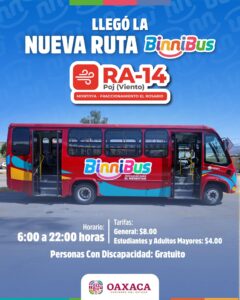Oaxaca de Juárez, Oax., 12 de enero de 2026.– El sistema de transporte urbano BinniBus anunció la puesta en marcha de dos nuevas rutas que fortalecerán la movilidad en la capital oaxaqueña, beneficiando a miles de usuarios con traslados más accesibles y eficientes.