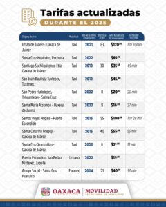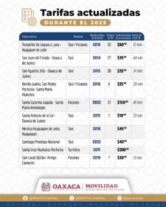 Oaxaca de Juárez, Oaxaca a 02 de abril de 2026.- Después de varios años sin ajustes en distintas regiones, la Secretaría de Movilidad (Semovi) llevó a cabo durante 2025 la regulación de tarifas del transporte público, sustentada en estudios técnicos de factibilidad.