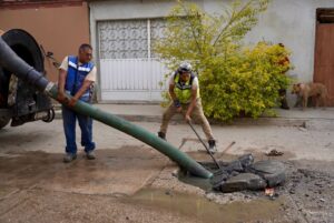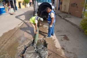 Como parte de estas acciones, se realizó también el desazolve en la calle Adolfo López Mateos, en la colonia Lázaro Cárdenas, con apoyo de equipo hidroneumático, a fin de garantizar su operatividad mientras concluyen los trabajos.