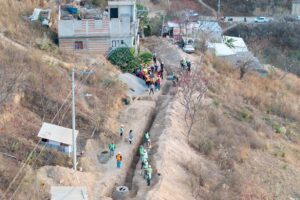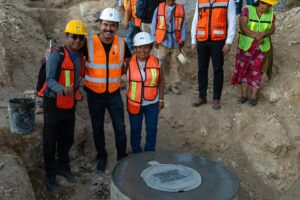 El presidente municipal, Ray Chagoya, realizó un recorrido de supervisión en la construcción de la red de drenaje sanitario en la colonia Los Ángeles, Pueblo Nuevo, una obra que permitirá mejorar la infraestructura básica en esta zona de la capital.